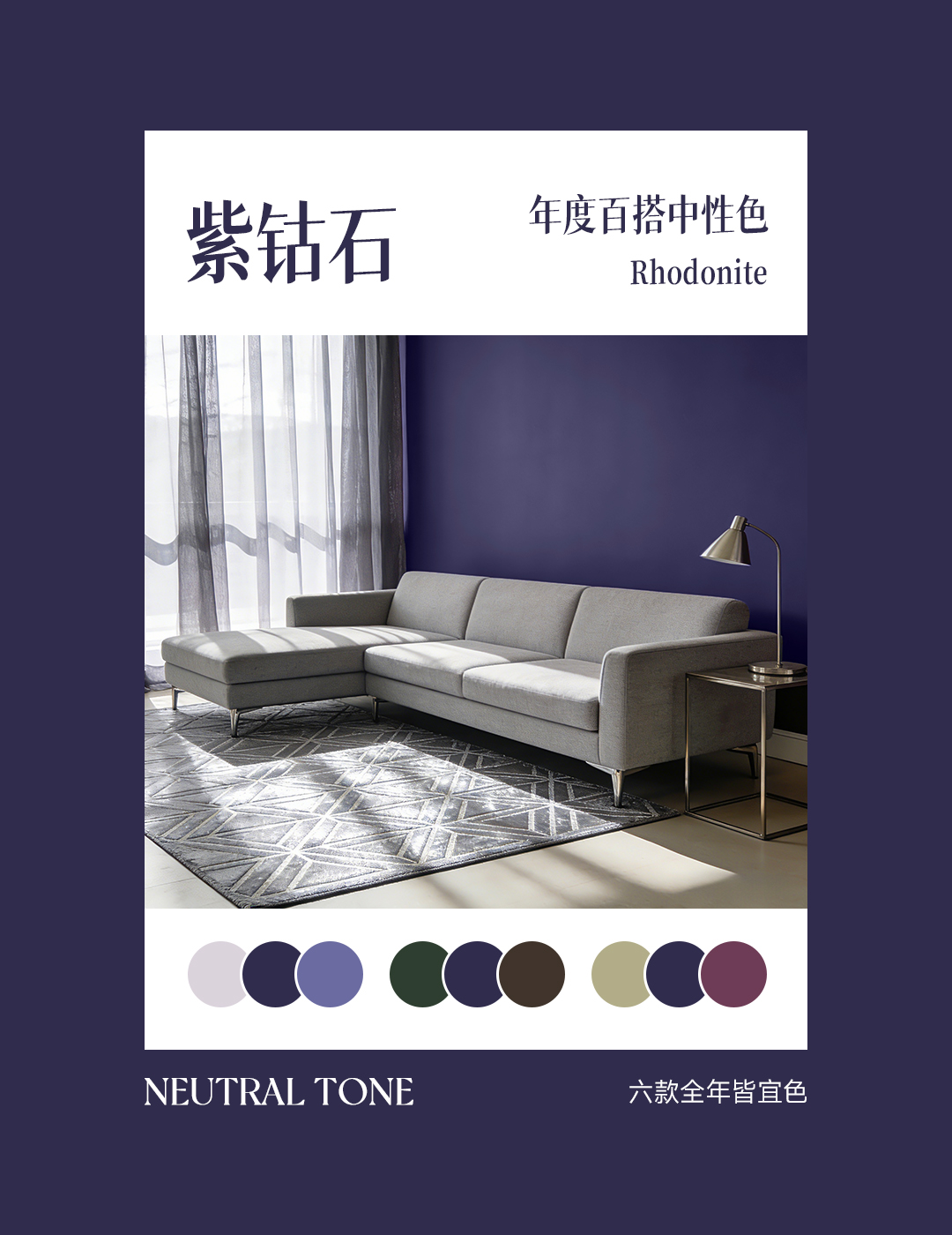 After exploring the aroma of coffee beans and the warmth of white Onyx, the painting of home colors should have a touch of imagination from the depths of the universe. It is calm, mysterious, with a hint of cold wisdom, as if it can contain the depth of the night and the faint light of the stars. This is the most unique and profound chapter among our six neutral tones that are suitable for all year round - 'Rhodonite'.
